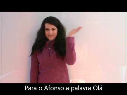 Os meninos do 4º A não assistiram à apresentação de "Uma história em LGP no 1º ciclo", por isso, cada aluno dessa turma, escolheu uma palavra em português para ser traduzida para LGP.